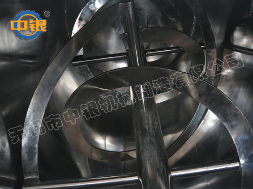 该机为卧式筒体,内外二层螺旋带具有独特的结构,运转平稳、质量可靠,噪音低,使用寿命长,安装维修方便,并有多种搅拌器结构,用途广泛的多功能混合设备。混合速度快,混合均匀度高,特别是粘性,螺旋带上可以安装刮板,更适应稠状、糊状的混合。在不同物料的混合要求下(特殊物料必须每次混合需清洗),采用不同螺旋带结构,可加热、干燥的夹套型。特种雾化液体,设有特种喷头。卧式机上也可以设有活动门,以便供用户清洗。